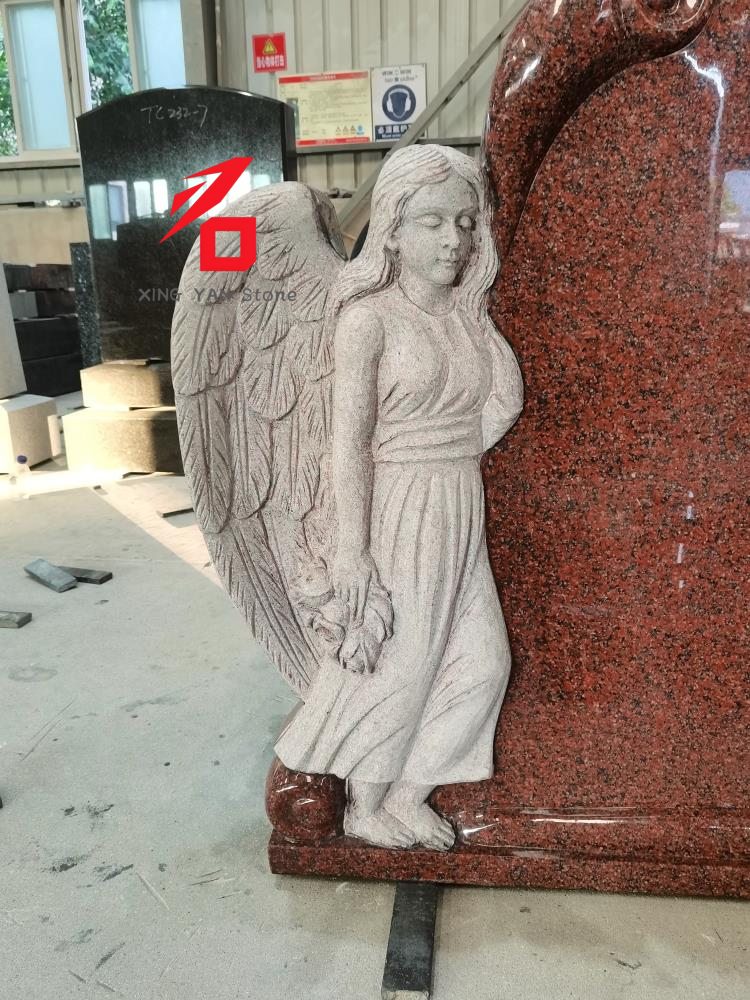 Concepto de diseño: El concepto de diseño central es "Angel Guardian". El granito rojo simboliza solemnidad y recuerdo, mientras que la imagen del ángel transmite luto y consuelo espiritual por el difunto. El diseño general rompe con la monotonía de las lápidas tradicionales y combina el atractivo artístico con la resonancia emocional.