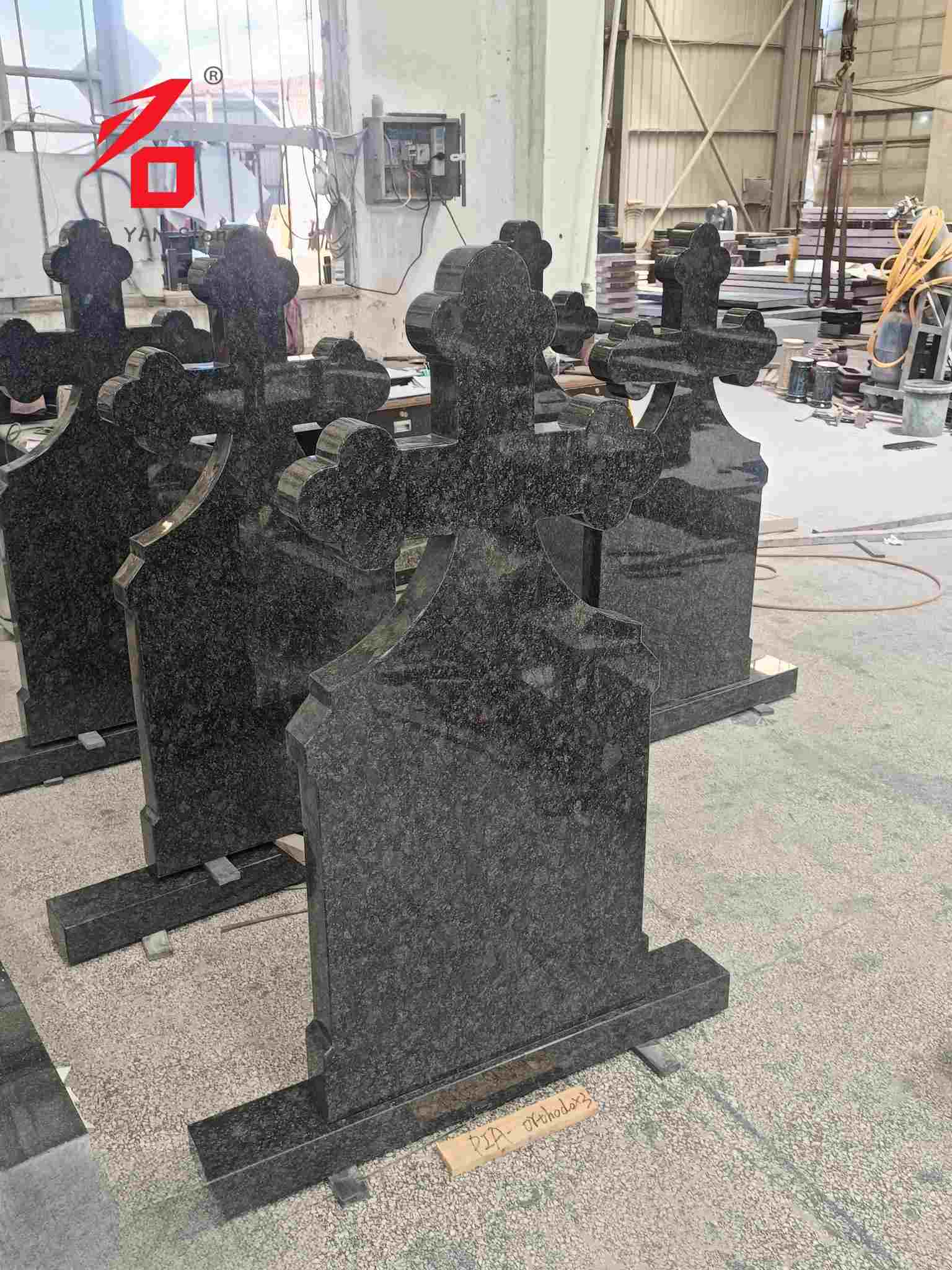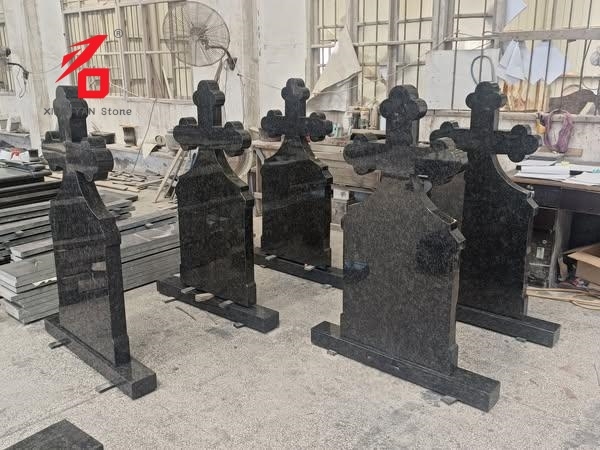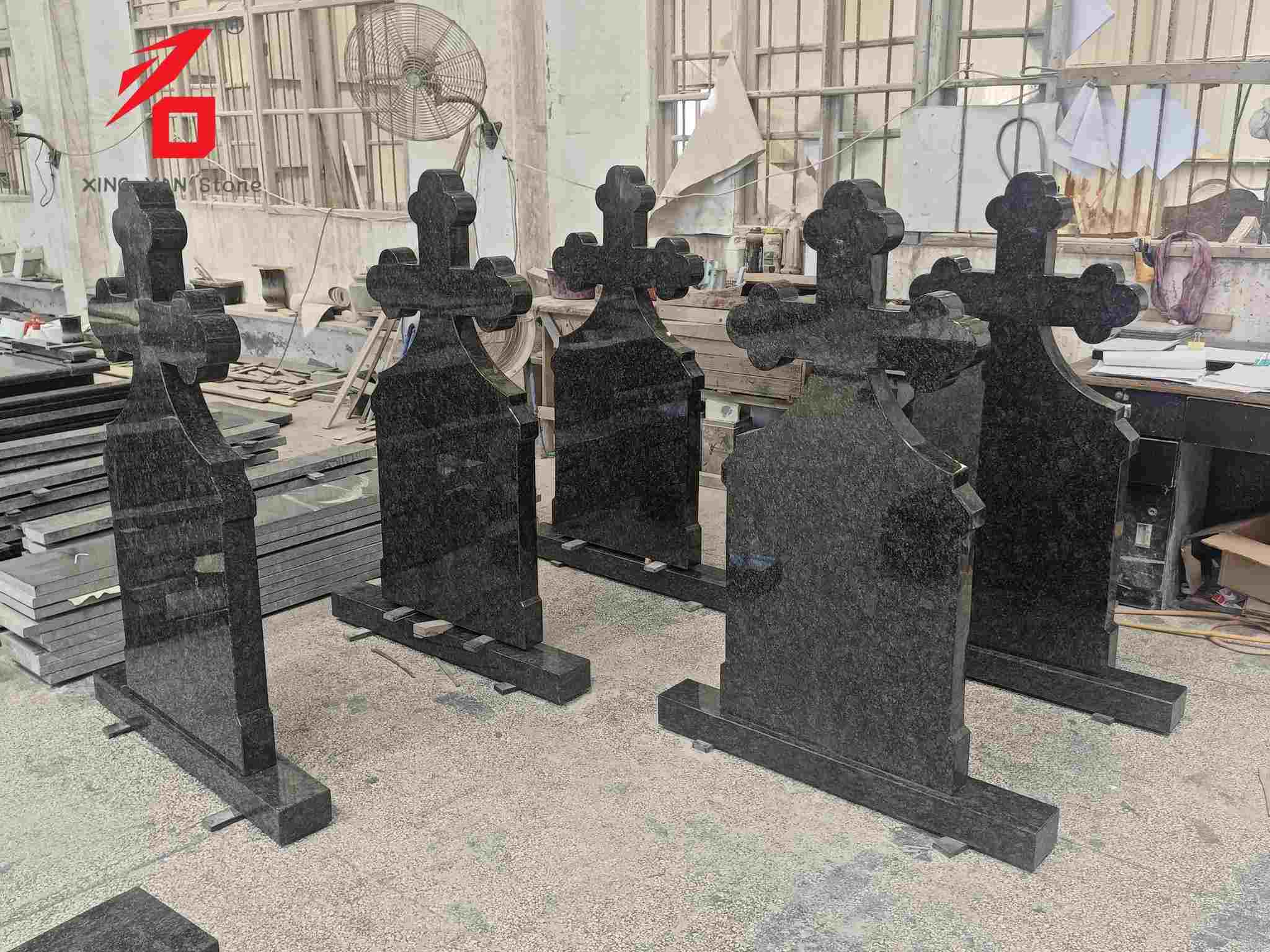 Concepto de diseño: Centrada en la "expresión simbólica de la religión", la forma de cruz sirve como emblema central de la fe cristiana. El tono solemne del granito negro refuerza la seriedad de la conmemoración. El diseño general es simple pero majestuoso, y se adhiere a las normas tradicionales del entierro religioso al tiempo que transmite reverencia por la fe a través del material y la artesanía.