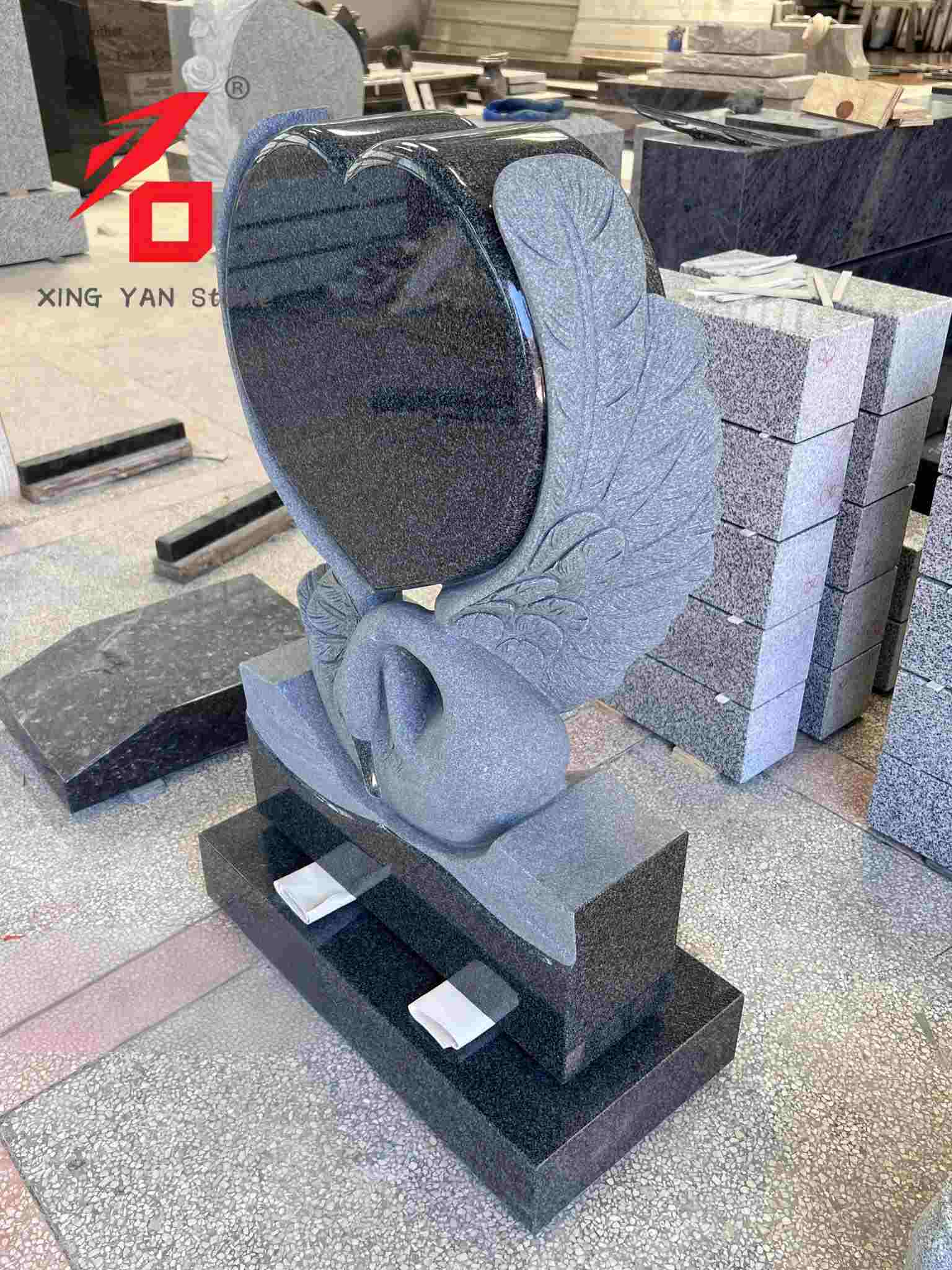 Diseño: El cuerpo principal es un corazón negro pulido, con alas de cisne realistas talladas detrás. La forma de cisne y el corazón simbolizan el amor eterno y el recuerdo del difunto. El diseño general es muy artístico, lo que lo distingue del estilo monótono de las lápidas tradicionales.