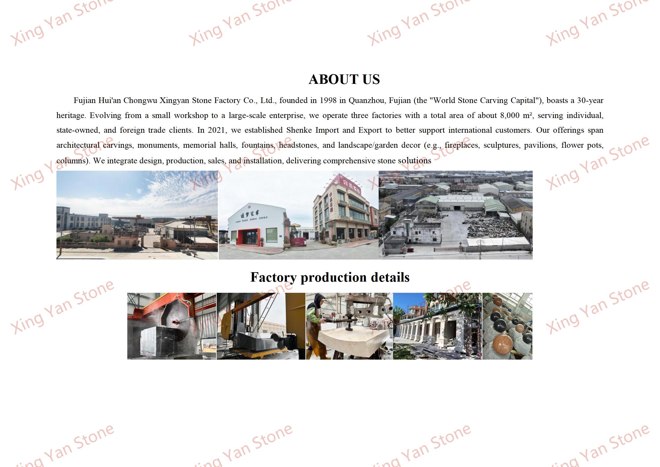 Servicios de personalización: el tamaño de la lápida se puede ajustar para cumplir con los requisitos (altura estándar de 1,2 a 1,8 metros) y se pueden agregar inscripciones como nombres, fechas de nacimiento y muerte y elogios. El color de la piedra también se puede personalizar;